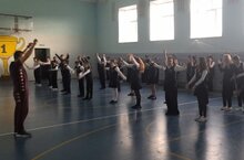 Утро началось с зарядки: в начальной школе в фойе ее провели ученицы 4 класса Бузунеева Сабина и Бессонова Ксения, в спортивном зале обучающиеся 5-11 классов выполняли упражнения по руководством учителя физкультуры Касимова В.В. Ребята 1 и 2 класса показали свои рисунки.