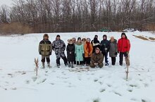 2 февраля с целью предотвращения замора рыбы участвовали вакции обучающиеся 8 класса вместе с классным руководителем Светланой Юрьевной на озёрах природного заказника Свияжский, под руководством руководителя районного межрайонного отдела Государственного комитета по биологическим ресурсам Макарова Александра. Данное мероприятие проводилось при поддержке организации ООО «Эникс». Егерь Верхнеуслонского охотничьего хозяйства Абгарян С.М. предварительно провёл инструктаж по технике безопасности, о безопасном поведении на льду. Государственным комитетом по биологическим ресурсом Республике Татарстан был выделен айратор для закачивания воздуха под лёд. Козлов П.Л. и Макаров А.Н. бурили лунки, остальные участники акции закладывали их ветками. Специалисты показывали, как правильно это делать, обрывая верхушки, чтобы получались полые трубки, именно они служат проводниками воздуха. Время мероприятия выбрано не случайно, именно в этот период на водоемах лед становится толще и у их обитателей начинается кислородное голодание. Часть учеников очищали от снега поверхность льда, другие занимались подготовкой сухого камыша для заполнения пробуренных лунок. За два часа участникам акции удалось сделать около 200 лунок.