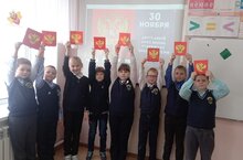 Накануне праздника 29 ноября ребята из 3 класса изготовили макеты герба РФ. А сегодня в школе была организована встреча учащихся 2- 4 классов с советником директора по воспитанию Лужаевой Н.В., которая рассказала о Гербе РФ, организовала интеллектуальную игру «Герб отечества», направленную на популяризацию государственной символики и формирование гражданско-патриотической позиции обучающихся.
