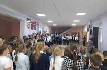 После урока состоялась линейка с исполнением гимнов РФ и РТ и поднятием флагов. Право поднять флаги было предоставлено нашим отличникам Квашневой Дарье и Жарковой Анастасии, ученицам 7 класса.