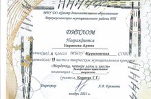 Арина представила свою работу «Кошечка» в номинации «Декоративно-прикладное творчество», а Артем сделал книжку-малышку с рассказом «Котенок, у которого не было клички» в номинации «Сочинение». Остальные участники конкурса получили сертификаты.