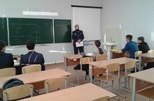 БСП төркеме өлкән инспекторы. эчке хезмәт капитаны Манерова Ольга Михайловна 10-11 нче сыйныф укучыларына академиянең үзе, керү имтиханнары, кабул итү шартлары, белгечлекләр турында сөйләде, шулай ук УИСка укырга кергән чыгарылыш сыйныф укучылары өчен социаль гарантияләр турындагы сорауларга да кагылды. -