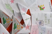 Свои письма ребята украсили рисунками, георгиевскими ленточками и оформили их в виде писем-треугольников.