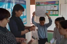 Акция «Радуга настроений». С утра учащиеся 5 класса встречали учителей и учеников с плакатом «С каким настроением ты пришел в школу». Обучающиеся и педагоги отмечали свое настроение с помощью цветных жетонов. В конце дня процедура повторилась.