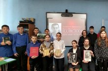 В классе была оформлена тематическая выставка, где ребята просмотрели книги, материалы, посвященные поэту-герою.