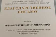 Руководитель учебного центра профессиональной квалификации МБОУ "Матюшинская СОШ" Ильдус Шарафеев принял участие в третьем форуме агрошкол России, который проходил с 24 по 26 августа в городе Тамбов. Он выступил с докладом "Агрошкола - модель сельской школы 21 века". За плодотворную работу в области агрообразования учащихся Ильдус Анварович был награжден Благодарственным письмом Государственной Думы Федерального Собрания Российской Федерации. Поздравляем с наградой, желаем дальнейших успехов в деле обучения и воспитания молодого поколения села.