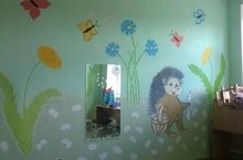 Ремонт в самом разгаре, уже многое сделано, покрашены окна,стены, полы. И самое интересное, что в группах появились веселые картинки, которые воспитатели рисуют сами. Надеемся, что детишкам понравятся расписные стены!