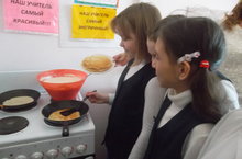 В День детей пятиклассники всех удивили своим мероприятием. Они устроили бабушкины посиделки. Собрались за круглым столом рассказывали о своих любимых бабушках и о том, какие вкусные блины и пироги они пекут. Каждый старался рассказать, какая хорошая у него бабушка. Сами побывали в роли бабушки, стояли у плиты и пекли вкусные румяные блины. Затем пригласили всех к себе в гости. С гордостью наливали горячий чай и угощали вкусными блинами.