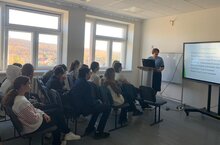 Алия Наилевна поделилась с ребятами программами обучения и разнообразием профилей учебного заведения. Ребята с удовольствием послушали лекцию преподавателя.