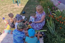 «В солнечный денечек с книгами в тенечек» - под таким названием прошла «литературная песочница» на открытом воздухе для детей дошкольного и младшего школьного возраста. Библиотекарь познакомила своих маленьких читателей с красочной книжечкой «Детский сад». Ребята с удовольствием послушали стихи Агнии Барто «Игра в стадо, «Если буду я усат», «Есть такие мальчики», отметили, что герои книги очень похожи на участников мероприятия. В ходе громких чтений дети знакомились с иллюстрациями к стихам и узнали, что веселые и красочные картинки нарисовали художники Е. Белозерцева, А. Котеночкин, В. Полухин. Закончились чтения поучительным стихотворением Сергея Михалкова «Письмо ко всем детям»