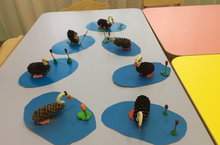 Воспитанники младшей группы МБДОУ «Нижнеуслонский детский сад» с воспитателем Асия Файзуловой на ООД по художественному творчеству (аппликация) из собранных во время прогулки листьев, сделали ёжика.