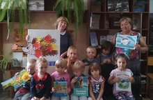Воспитанники Нижнеуслонского детского сада приняли участие в международной акции «Книжка на ладошке». Для старшей группы в сельской библиотеке прошел урок доброты «Сказочный лес Сергея Козлова». В начале мероприятия дети познакомились с материалами выставки «Сказки из самой души». Ребята с удовольствием разглядывали книги писателя, иллюстрации к сказкам, обаятельных персонажей медвежонка и ежика. Из рассказа библиотекаря Нины Морозенковой дошколята узнали о жизни и творчестве писателя. Дети наперебой вспомнили любимые мультики по сказкам Сергея Козлова про неразлучных друзей Ежика, Медвежонка и Зайца, посмотрели мультфильм про удивительную страну «Тилимилитряндию», послушали сказку «Как Львенок и Черепаха пели песню». Закончилось мероприятие творческой работой в технике «Библиотечный квилт», в ходе которой ребята изобразили ежика - любимого героя писателя Сергея Козлова. Добрый Ежик нарядился в новую шубку из ярких детских ладошек и сфотографировался с маленькими благодарными читателями на память.