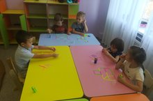Сегодня воспитанники старшей вместе с воспитателем Татьяной Гущиной конструировали, играя с помощью счетных палочек.