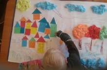 Наблюдая за природой во время прогулки, мы видим « Осень » как красивую пору. Она как художник придумывает свои наряды, сама решает каким цветом будет окрашено то, или иное дерево, куст. Сегодня ребята сами выбирали материал для аппликации - салфетки разных цветов! Получилось очень ярко и безумно красиво!