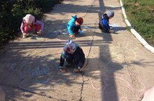 В МБДОУ «Нижнеуслонский детский сад» ребята вместе с педагогами на прогулке рисовали мелками на асфальте.