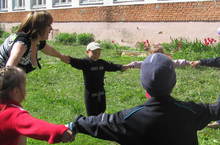 "Укрепляем здоровье" 14.06.2013 В МБДОУ "Нижнеуслонском детском саду" воспитатель Ольга Сутулова проводит не только зарядку, но и подвижные занятия на свежем воздухе.