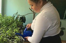 Пересадили цветы в горшках, обновили землю. Теперь в помещении школы зацветут обновленные растения.