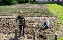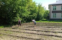 Сегодня на пришкольном учебно-опытном участке технические работники и дежурные учителя посадили томаты, лук, морковь и прочие овощи.
