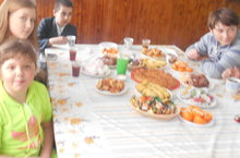 После физической нагрузки хорошо было подкрепиться. В столовой был накрыт вкусный стол для спортсменов.