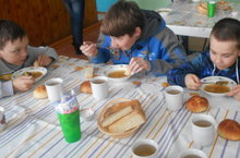 После такой нагрузки вкусным обедом с пирогами встретили всех в столовой. Не забыли поздравить мужскую часть нашего коллектива. Вот такой замечательный день был у нас сегодня!