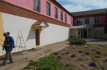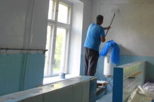 Работники школы готовят здание к 1 сентября