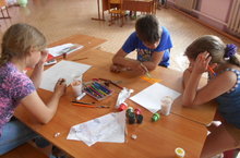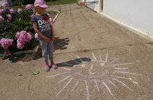 Поспорили, кто нарисует самое весёлое солнышко.