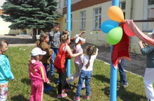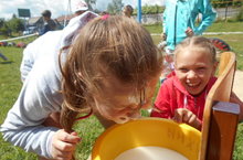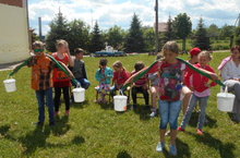 Соревновались в беге с ведёрками, стараясь не пролить ни капельки.