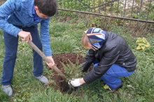 14 октября родители и дети вместе сажали деревья во дворе школы