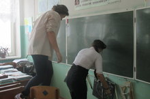 19.03.2016.Девятиклассники перед весенними каникулами в своем классе решили провести генеральную уборку.