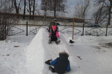 Замечательную ледяную горку во дворе школы построили старшие ребята во главе с В.Иликовым.