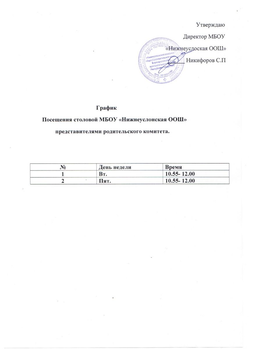 График посещения столовой родительским комитетом