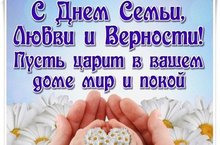 Примите поздравления в День семьи, любви и верности! Семьи — основа общества, её первичные звенья, главные ячейки, из которых строится государство. Пусть ваши семьи будут крепкими, пусть в них царят любовь и взаимопонимание, а перед глазами детей будет положительный пример родителей. Счастья и благополучия всем семьям, а нашей стране — процветания!