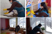 Сегодня, 4 февраля, сотрудники МБДОУ «Октябрьский детский сад" провели генеральную уборку с применением специальными дезинфицирующими растворами.