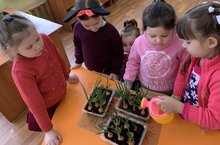 В МБДОУ «Октябрьский детский сад» продолжается посадка растений в помещении, в комнатных условиях в целях познания природы и окружающего мира.