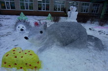 Ежегодно в МБОУ «Октябрьская СОШ» под Новый год учителя вместе с учащимися лепят из снега сказочный городок.