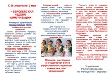 Управление Роспотребнадзора по Республике Татарстан (далее - Управление) информирует Вас о том, что по инициативе Всемирной организации здравоохранения в Европе, в том числе в Российской Федерации и в Республике Татарстан в период с 26 апреля 2 мая 2021 года проводится Европейская неделя иммунизации (далее ЕНИ-2021).