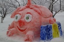 Силами сотрудников ДШИ сотворялась подготовительная работа по изготовлению снежной скульптуры. Довершили образ преподаватели отделения изобразительного искусства.