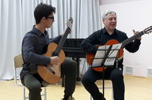 31 октября, в актовом зале ДШИ, в рамках музыкально-просветительского проекта «Музыкальная среда», прошел концерт гитарной музыки заслуженного деятеля РТ, доцента Казанской государственной консерватории, композитора Виталия Харисова и его ученика, выпускника нашей школы Айдара Абдрахимова.