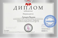 Лужаев Вадим, ученик Детской школы искусств, – победитель конкурса, II призовое место по предмету «Музыка», награждён Диплом II степени. Преподаватель хора и теоретических дисциплин Людмила Хуртина, подготовившая конкурсанта, получила Благодарственное письмо и Свидетельство за активное участие в конкурсе.