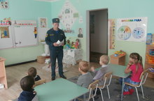 В рамках проведения месячника безопасности, с воспитанниками детского сада встретился командир отделения ПЧ с. Макулово Торгаев Сергей. Ребята с неподдельным интересом слушали выступление сотрудника ПЧ., который озвучил ребятам ряд простых, но таких жизненно важных правил, которые, несомненно, пригодятся в жизни и помогут предупредить возникновение пожаров. Также Сергей Павлович объяснил детям, какие действия, им следует предпринимать, если экстренная ситуация всё-таки произошла.