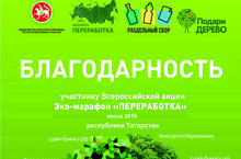 Благодарность за участие в эко-марафоне «Переработка»! 11.03.2019