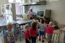 Уже в младших группах наши дети узнают не только о профессиях, но и воплощают свои знания в сюжетно-ролевых играх. Так на этой неделе воспитанники младшей группы познакомились с профессиями своего детского сада. Для них была проведена экскурсия на кухню к повару и в медицинский блок к медсестре. Детям особенно понравилась экскурсия на кухню. Они сами увидели где для них варят, суп, жарят котлеты и готовят булочки. Дети задавали много вопросов и получили массу впечатлений.