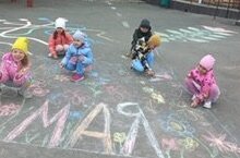 В преддверии 1 мая – Праздника Весны и Труда, 26 апреля в нашем детском саду прошел конкурс рисунков на асфальте «Цветущий первомай». Удивительные шедевры - коллективные работы детей групп дошкольного возраста не только украсили территорию детского сада, но и создали хорошее настроение. Ребята творчески отнеслись к заданию, всего за несколько минут на асфальте появилась радуга красок, интересные рисунки и, конечно, же, засияло Солнце. Все старались помочь друг другу и превратили серый асфальт в солнечный мир. -