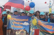 1 Мая все сотрудники детского сада "Солнышко" приняли активное участие в праздновании проходящем на площади около Волги.