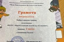 Воспитанница старшей группы Хайрутдинова Амина, заняла второе место в республиканском конкурсе рисунков и видеороликов "Будь бдительным на льду и на воде". Поздравляем Амину с победой и желаем дальнейших успехов!