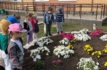 Дети старшей группы прогулялись по экологической тропе в детском саду, познакомились с кустарниками и цветами.