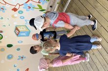 Для детей дошкольного возраста нет ничего интереснее и увлекательнее, чем игра. Особенно, если эта игра приключенческого характера, где нужно искать сокровища, выполнять разные задания, чтобы добыть самый главный приз! Такие игры называются квестами, и они сегодня очень популярны в детских садах. 17 июля в нашем детском саду было шумно и весело! Дети вместе со своими педагогами участвовали в увлекательной квест – игре, которая проходила на территории детского сада. Их ждало множество испытаний, из которых они выходили еще более смелыми, ловкими, находчивыми и сообразительными. В поисках клада ребята побывали на станциях: «СКАЗОЧНАЯ», «СПОРТИВНАЯ», «ОГОРОДНАЯ», «МУЗЫКАЛЬНАЯ», «ЗНАТОКИ ПДД», «МАТЕМАТИЧЕСКАЯ», «ЭКОЛОГИЧЕСКАЯ», где они отгадывали загадки, сказки, решали математические задачи, танцевали, соревновались в ловкости, быстроте и выносливости, играли в знатоков правил дорожного движения. Каждая команда, а их было семь, после выполненных заданий, получили пазл и составили заветную карту, которая привела к сундуку с сокровищами (угощениями).