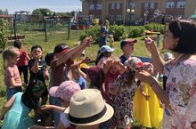 Мыльные пузыри любят все и взрослые, и дети. Пускать пузыри – это очень увлекательный процесс, который дарит много позитивных эмоций. Сегодня для детей детского сада было представлено «Шоу мыльных пузырей». Это поистине волшебное представление, которое поражает воображение. Артисты заставляли маленькие пузырьки собираться в грозди, а потом образовывать один большой пузырь, который в свою очередь «танцевал» под музыку которые переливались всеми цветами радуги и восхищали не только детей, но и взрослых. Шоу с мыльными пузырями на детей произвело потрясающее впечатление. Это "Шоу мыльных пузырей" запомнится надолго своей необычностью, неординарностью, и дети будут восторженно говорить о нём и несколько месяцев спустя.