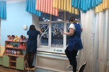 Новый год — это радостная сказка для детей, их восхищает атмосфера волшебства. Хочется не только попасть на новогоднюю сказку, но и творить ее самим. Педагоги и воспитанники начали готовиться к новогодним праздникам и во всех группах украсили окна волшебными ажурными аппликациями на тему "Новогодняя сказка". Украшение окон детского сада проводится в целях выявления лучших художественно-оформительских решений по созданию эстетически привлекательной праздничной среды и привлечения дошкольных образовательных учреждений к новогоднему оформлению родного города. В сюжете оформления окон используются красивые композиции: ажурные сугробы, елочки и зимние деревья, лесные животные, птицы, белоснежные снежинки, порхающие в воздухе и конечно Дед Мороз и Снегурочка.