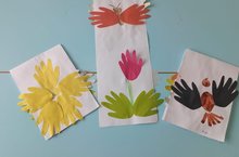 Красивые аппликации из вырезанных цветных ладошек сегодня мастерили воспитанники старшей группы.